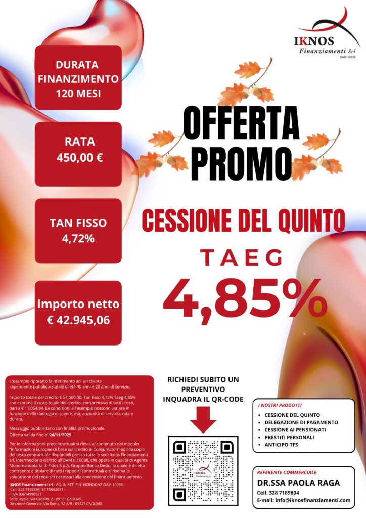 Promozione Autunno 2025 con Militari amministrativa29 Ottobre 2025Sezione Finanziaria Clicca qui per scaricare la locandina Modulo iknosfinanziamentiCompila ora la tua RichiestaImporto richiestoNomeCognomeLa tua emailTelefono Dichiaro di aver preso visione delle informative , in conformità al Regolamento UE 2016/679 e alle prescrizioni del Garante per la protezione dei dati personali.Fai click qui per leggere l'informativa su come trattiamo i tuoi dati e su come puoi esercitare i tuoi diritti.Invia 2.963 Condividi: